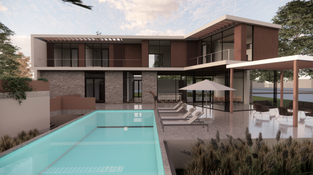DEC is responsible for the MEP system design, leveraging Revit software to deliver efficiency, sustainability, and occupant comfort. The HVAC system incorporates a high-performance heat pump with energy recovery ventilation to maintain superior indoor air quality. Domestic hot water and heating are supplied through the eco-friendly SANCO2 heat pump system. The electrical design integrates energy-efficient strategies, EV charging infrastructure, and solar-ready provisions. Plumbing features water-saving fixtures and a properly sized hot water recirculation system. Dedicated mechanical and electrical systems for the pool and garage are seamlessly integrated with the main residence.